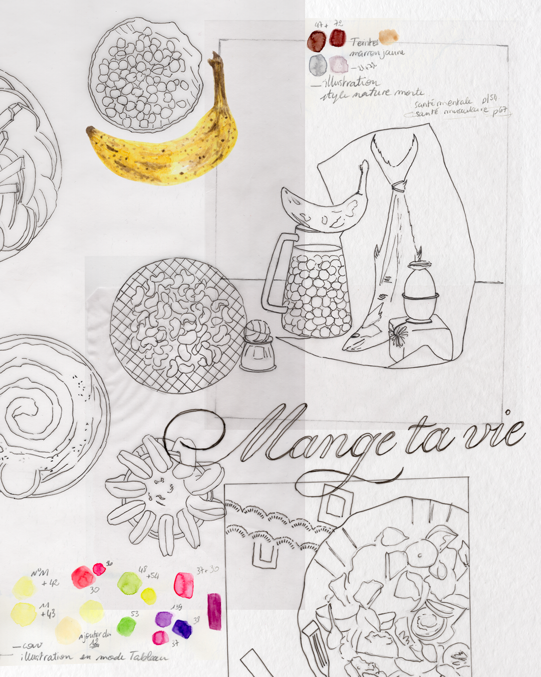 Suite à la sortie de son ouvrage "Mange ta vie", Catherine Saint-Laurent m'a proposé de créer une série d'illustrations de son livre.
