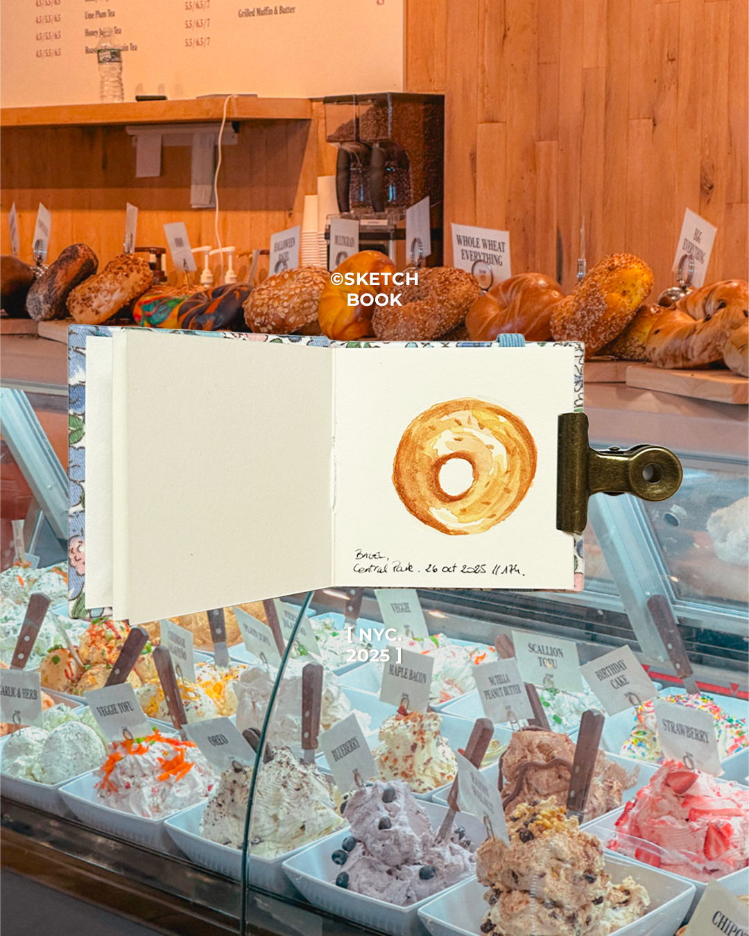 Armée d'un pinceau et d'un sketchbook au format mini, j'ai relevé le défi de condenser l'âme de NYC dans quelques centimètres carrés. Des tranches de pizza iconiques aux pâtisseries cachées de West Village, chaque page est un souvenir croqué sur le vif. Bienvenue dans ma quête de gourmandise, version miniature.
