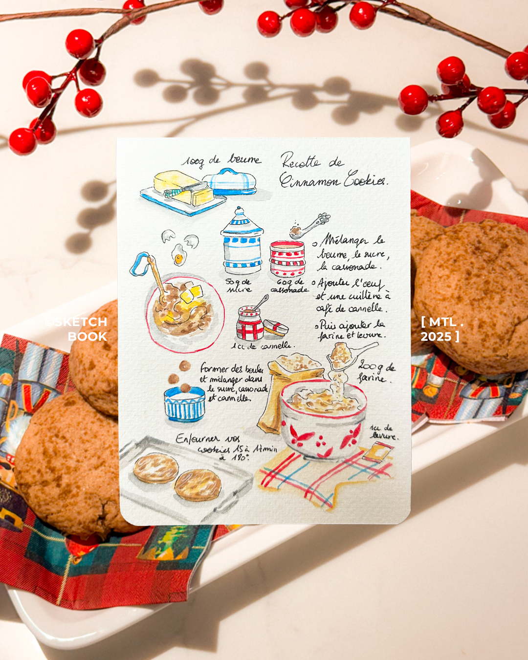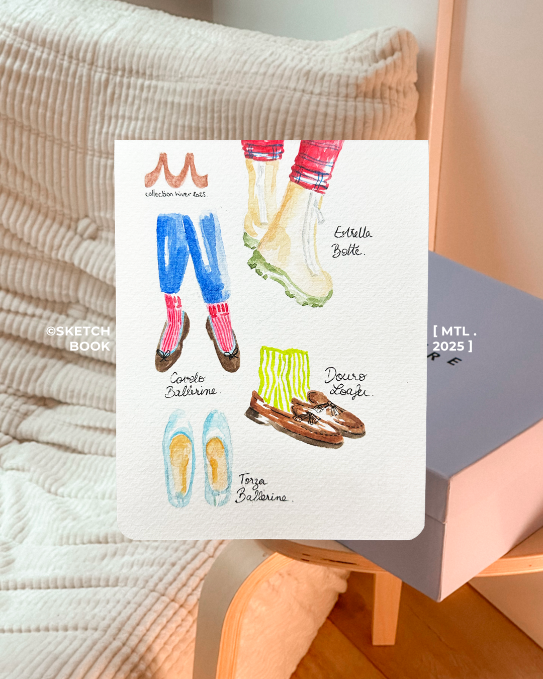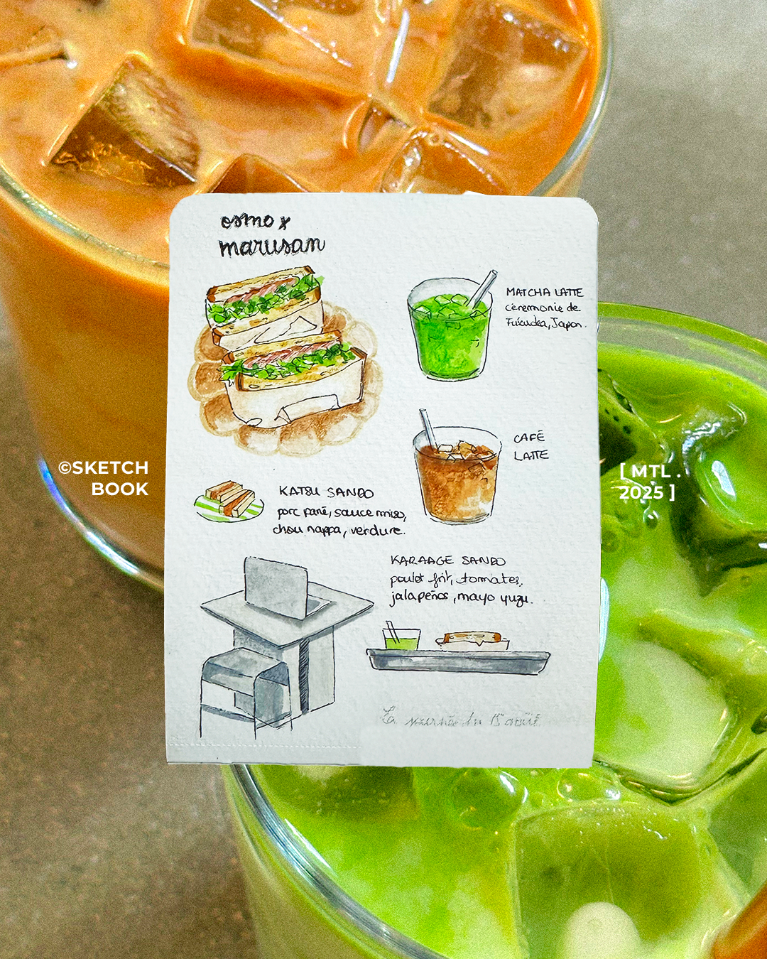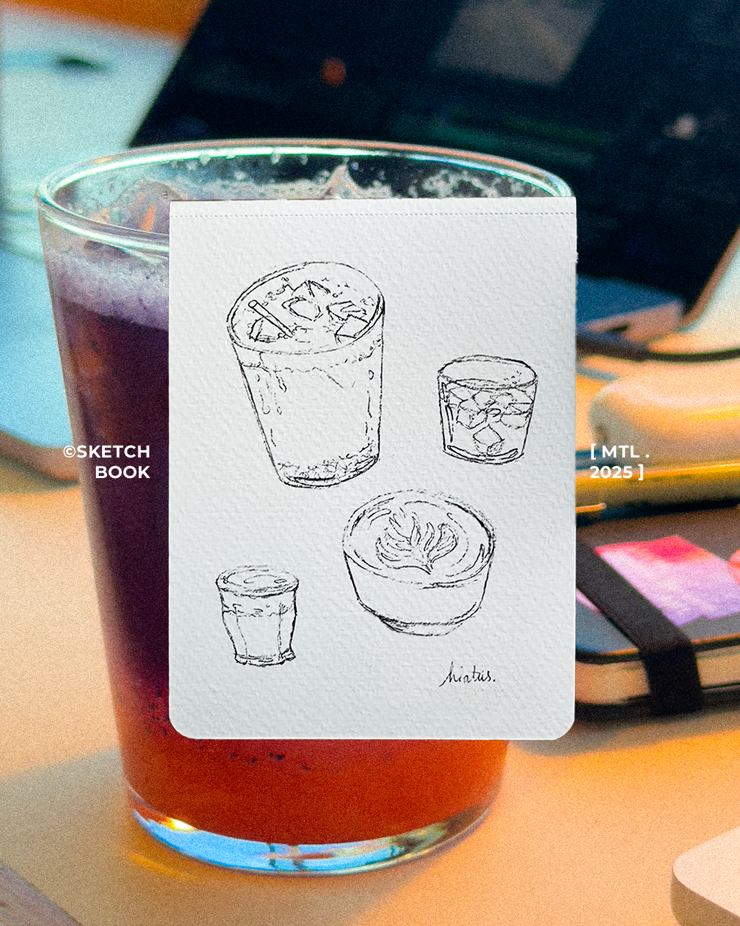 Ce carnet est mon laboratoire personnel, un espace de liberté totale où chaque page est une invitation à l'expérimentation. Entre deux recettes de cuisine illustrées et des fragments de vie capturés sur le vif, je m'en sers pour tester de nouvelles techniques et explorer des palettes chromatiques. C'est ici que le banal devient une histoire.
